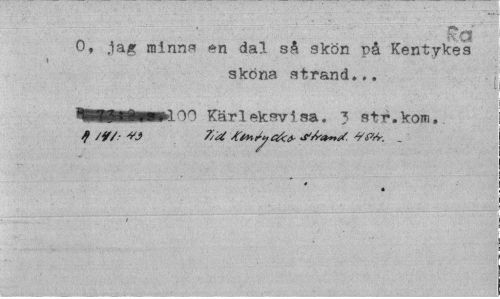 //// ... ... ' //// O, jag minns en dal så skön på JCentykes //// \ //// sköna strand... //// llPRMMHn^lOO Kärleksvisa, 3 str.kom. //// « ////