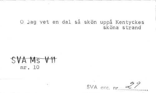 //// O 3ag vet en dal så skön uppå Kentyckes //// sköna strand //// nr. 10 //// SVA ccc. ////
