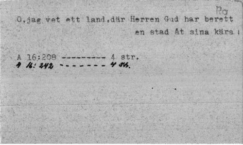 //// 0,-jae vet ett land,där Herren Gud har berett //// en stad åt sina kära i //// A 16:208 --- 4 str. //// * A i Vft...V ////