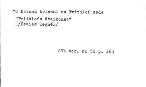 //// "O kvinna kvinnai nu Frithiof sade //// "Frithiofs återkomst" /Esaias Tegnér/ //// SYA acc. nr 52 p. 163 ////