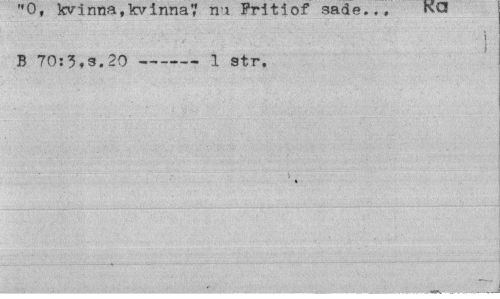 //// "O, kvinna,levinnaV nu Fritiof sade... //// ¦ " ¦'. ¦ i //// i //// B 70:3.3.20---1 str. //// i ////