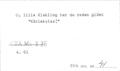 //// O, lilla älskling har du redan glömt "Kärlekvisa!" //// -SVA Ms V Vk //// s. 61 //// SVA ccc. nr. .i/ ////