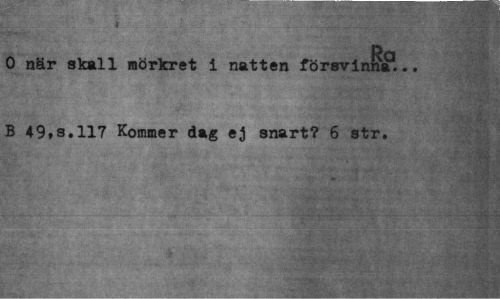 //// Ra //// O när skall mörkret i natten försvinna... B 49,s.ll7 Kommer dag ej snart? 6 str. ////