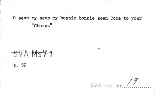 //// O sean my sean my bonnie bonnie sean Come to your "Chorus" //// s. 52 //// // //// SVA ccc. nr../../... ////