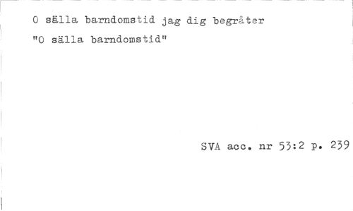 //// O sälla barndomstid, jag dig begråter "0 sälla barndomstid" //// SVA aoc. nr 55:2 p. 239 ////