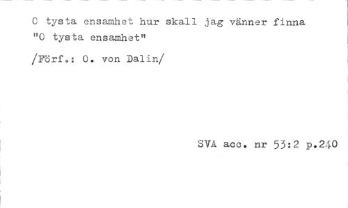 //// C tysta ensamhet hur skall jag vänner finna "O tysta ensamhet" //// /Förf.: 0. von Dalin/ //// SVÅ acc. nr 53:2 p.240 ////
