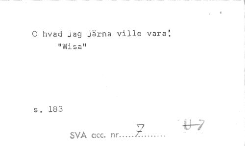 //// * //// O hvad jag Järna ville vara'. "Wisa" //// s. 183 //// | //// V Xr7 //// SVA ccc. nr.../... ////