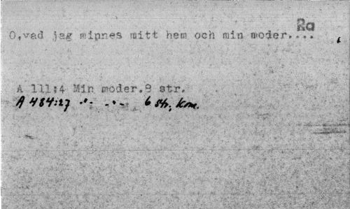//// " 1*1 //// Ka //// O,vad ia^ rnipnes mitt hem och min moder»... . A Til; 4 Min moder.9 str. ////