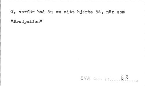 //// O, varför bad du om mitt hjärta då, när som "Brudpallen" //// SVA ccc. t $ //// V-J» ////