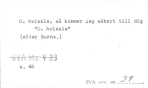 //// O, hvissla, sa kommer jag säkert till dig //// "O, hvissla" (efter Burns.) //// <J v v » ii <i w w Gu W //// s. 48 //// ? T //// SVA crc. nr...t;... ////