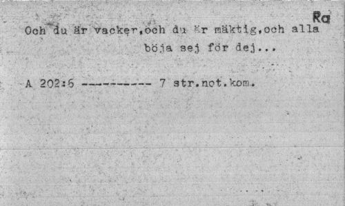 //// Och du är vacker,och du är mäktig,och alla //// böja sej för dej... //// A 202.: 5 --- 7 str.not.kom. ////