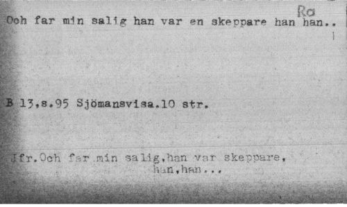 //// m Ko //// Ooh far min salig han var en skeppare han han.. //// ! //// HK, //// A //// K.. //// K»': //// ¦K» //// B 13,8.95 Sjömansvisa.10 str. //// Wj&f-.-'- //// r-Jfr.Och far .min salig,han vnr skeppare, KiL h.aa,h«n... ////