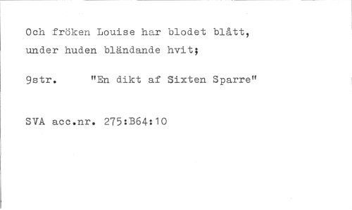 //// Och fröken Louise har blodet blått, under huden bländande hvitj //// 9str. "En dikt af Sixten Sparre" //// SVA acc.nr, 275:B64:10 ////