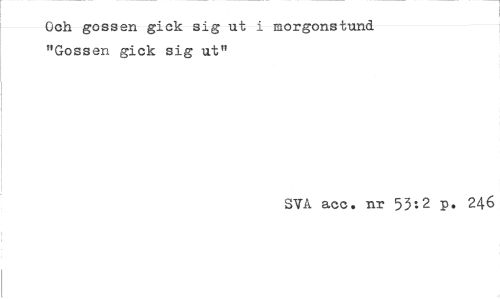 //// Och gossen gick sig ut i morgonstund "Gossen gick sig ut" //// 3VA acc. nr 53:2 p. 246 ////