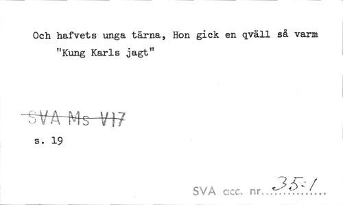 //// Och hafvets unga tärna, Hon gick en qväll så varm "Kung Karls jagt" //// -sva-Ms-w //// S. 19 //// 3 V / //// SVA ccc. nr... ////