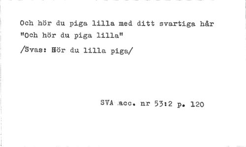 //// Och hör du piga lilla med ditt svartiga hår "Och hör du piga lilla" //// /Svas: Hör du lilla piga/ //// SVA acc. nr 53:2 p. 120 ////
