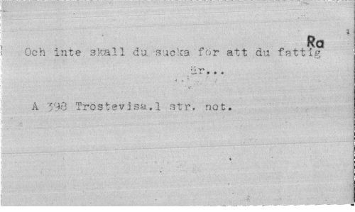 //// : ... : . . //// Ra //// uch inte skall du sucka for att du fattig //// • ' -v* //// i. « » • //// A 398 Tröstevisa,1 str, not. ////
