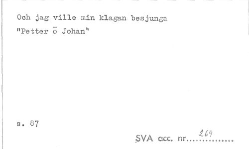 //// Och jag ville min klagan besjunga "Petter o Johan* //// s. 87 //// SVA acc. nr...T.f.'... ////