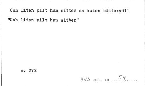 //// Och liten pilt han sitter en kulen höstekväll "Och liten pilt han sitter" //// s. 272 //// SVA acc. nr... ////