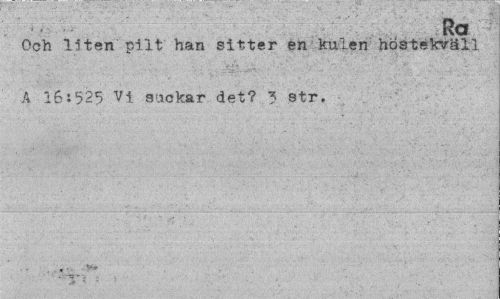 //// Ra //// Och liten pilt han sitter en kulen höstekväll //// A 16:525 Vi suckar det? ? str. ////