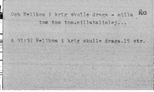 //// i Och Mftllbom i krig »kulle draga - mil la i\ //// - tom tom tom,!f ill ataliale v. .. //// i A. 91:92 Mellbcm i krig skulle draga. 15 str. ////