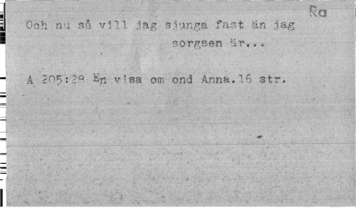 //// 2 Och nu så vill jag sjunga fast än jag s sorgsen ur... //// A 205:2° Sn v'sa om ond Anna.str. ////