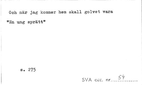 //// Och när jag kommer hem skall golvet vara MSn ung sprätt" //// s. 275 //// SVA ccc. nr___f.^... ////