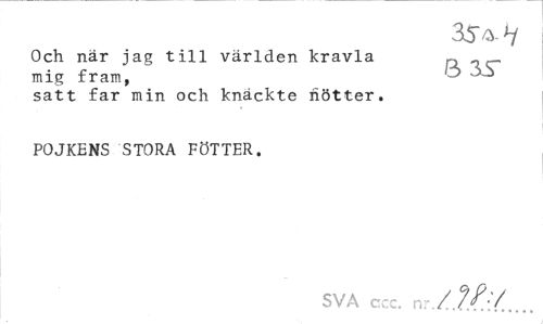 //// 35H //// Och när jag till världen kravla __ //// mig fram, //// satt far min och knäckte nötter. POJKENS STORA FÖTTER. //// SVA ccc. n: / ////