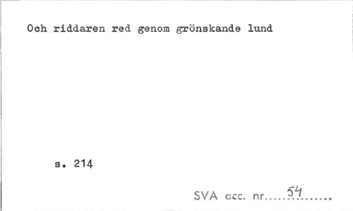 //// Och riddaren red genom grönskande lund //// s. 214 //// SVA ccc. nr... ////