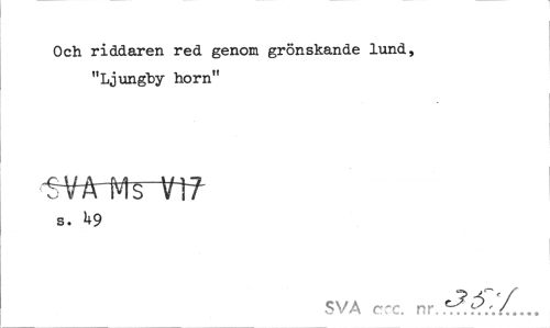 //// Och riddaren red genom grönskande lund, //// "Ljungby horn" //// tVA-MrYtf //// s. U9 //// SVA ccc. n ////