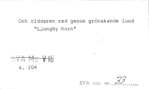 //// Och riddaren red genom grönskande lund "Ljungby 'horn" //// -rlrM^Hé //// s. 104 //// SVA ccc. nr ./Kal... ////