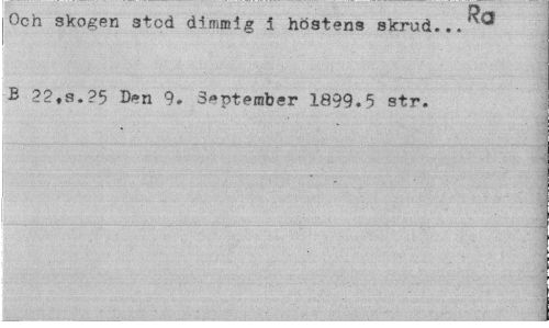 //// Och skogen stod dimmig i höstens skrud... B 22,s.?5 D*n 9. September 1899.5 str. //// ¦ ////