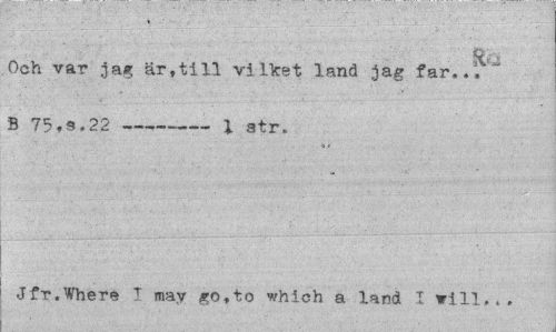 //// a,. //// Och var .jag är,till vilket land jag far... B 75*9.22---l str. //// •>* //// Jfr.Where T may go,to which a land I vill... ////