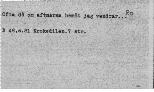 //// Ro //// Oft* då om aftnarna hemåt jag vandrar... B 48,3.81 Krokedilen.7 str. ////