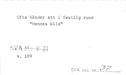 //// Ofta händer att i festlig rund "Hennes bild" //// SVA Ms-¥-« //// s. 189 //// SVA ccc, nr. ////