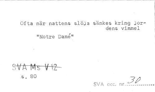 //// Ofta när nattens slöja sänkes kring jordens vimmel //// "Notre Damé" //// s . 80 3 //// SVA ccc. nr. ... ////