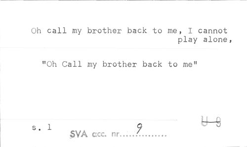 //// Oh call my brother back to me, I cannot //// play alone, //// "Oh Call my brother back to me" //// i i q //// s. i 9 //// SVA ccc. nr.../... ////