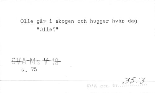 //// Olle går i skogen och hugger hvar dag "Olle'." //// s. 75 //// --- //// C, V fi! ////