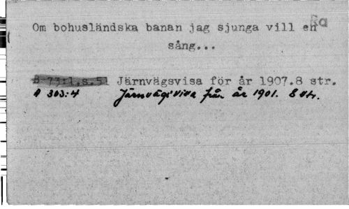 //// 1 Om bohusländska banan jag sjunga vill énr*. I sång... //// "Ml IIIi TB Järnvägsvisa for år 1907.B str. ////