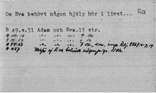 //// Om Eva behövt någon hjälp här i livet... B 49,3.51 Ada» och Eva.13 str. //// 1? Stt; /g - -4'. f Jfr. //// * ?y-*J -. 7 -o*», -CA: fU>?:*-7, ////