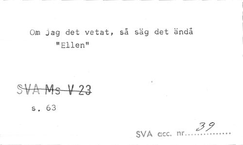 //// Om jag det vetat, så säg det ändå "Ellen" //// mHVte-V-23 //// s. 63 //// SVA ccc. nr...- ////