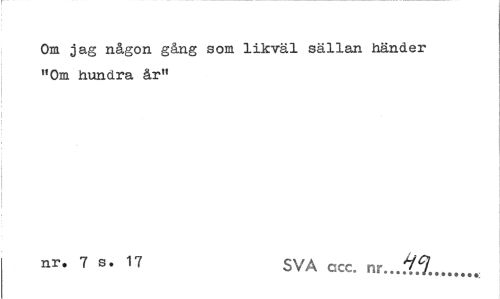 //// Om jag någon gång som likväl sällan Jiänder "Om hundra år" //// 7 s. 17 SVA ccc. nr... ////