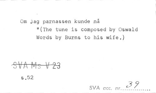 //// Om jag parnassen kunde nå //// "(The tune is composed by Oswald Words by Burns to his wife.) //// s .52 //// SVA ccc. nr...^..?... ////