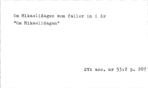 //// Om Mikaelidagen som faller in i år "Om Mikaelidagen" //// SVA acc. nr 53:2 p. 207 ////