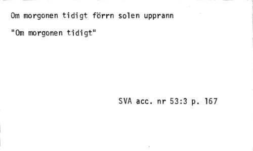 //// Om morgonen tidigt förrn solen upprann "Om morgonen tidigt" //// SVA acc. nr 53:3 p. 157 ////