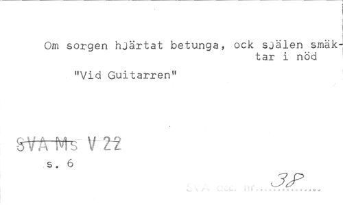 //// Om sorgen hjärtat betunga, ock själen smak- //// tar i nöd //// "Vid Guitarren" //// 8ifirH^ V VL //// s. 6 //// JcP ////