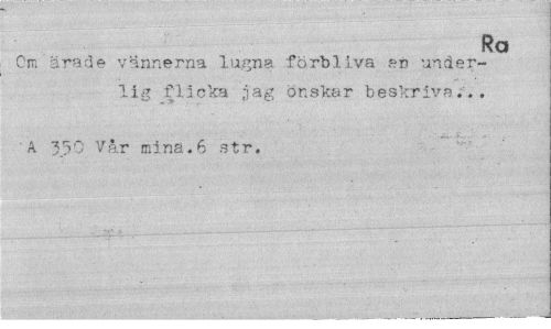 //// Ra //// Om ärade vännerna lugna förbliva er underlig flicka jag önskar beskriva... //// A 350 Vår mina.6 str. ////