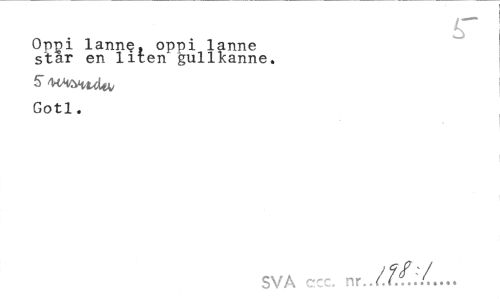 //// r //// Oppi lanne, oppi lanne star en liten gullkanne. //// 5 WitHtdw //// Gotl. //// SVA cäcc. nr ////