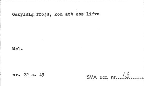 //// Oskyldig fröjd, kom att oss lifva Mel. //// nr* 22 s' 43 SVA ccc. nr .JA... ////