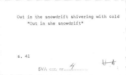 //// Out in the snowdrift shivering with cold "Out in she snowdrift" //// s. 41 //// SVA ccc. nr..."Z... ////